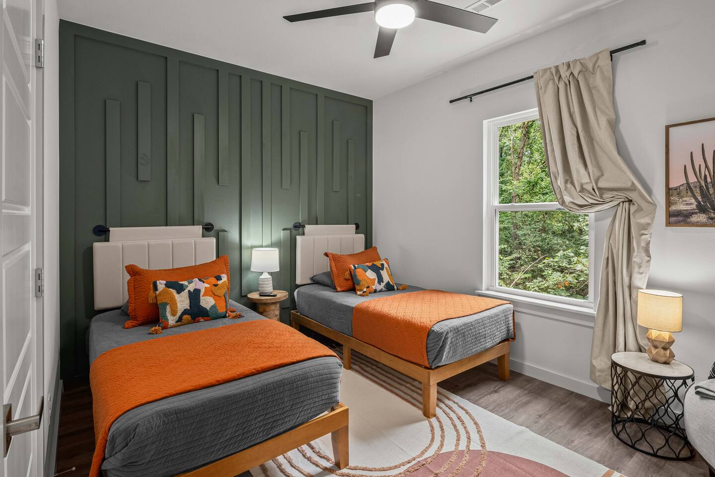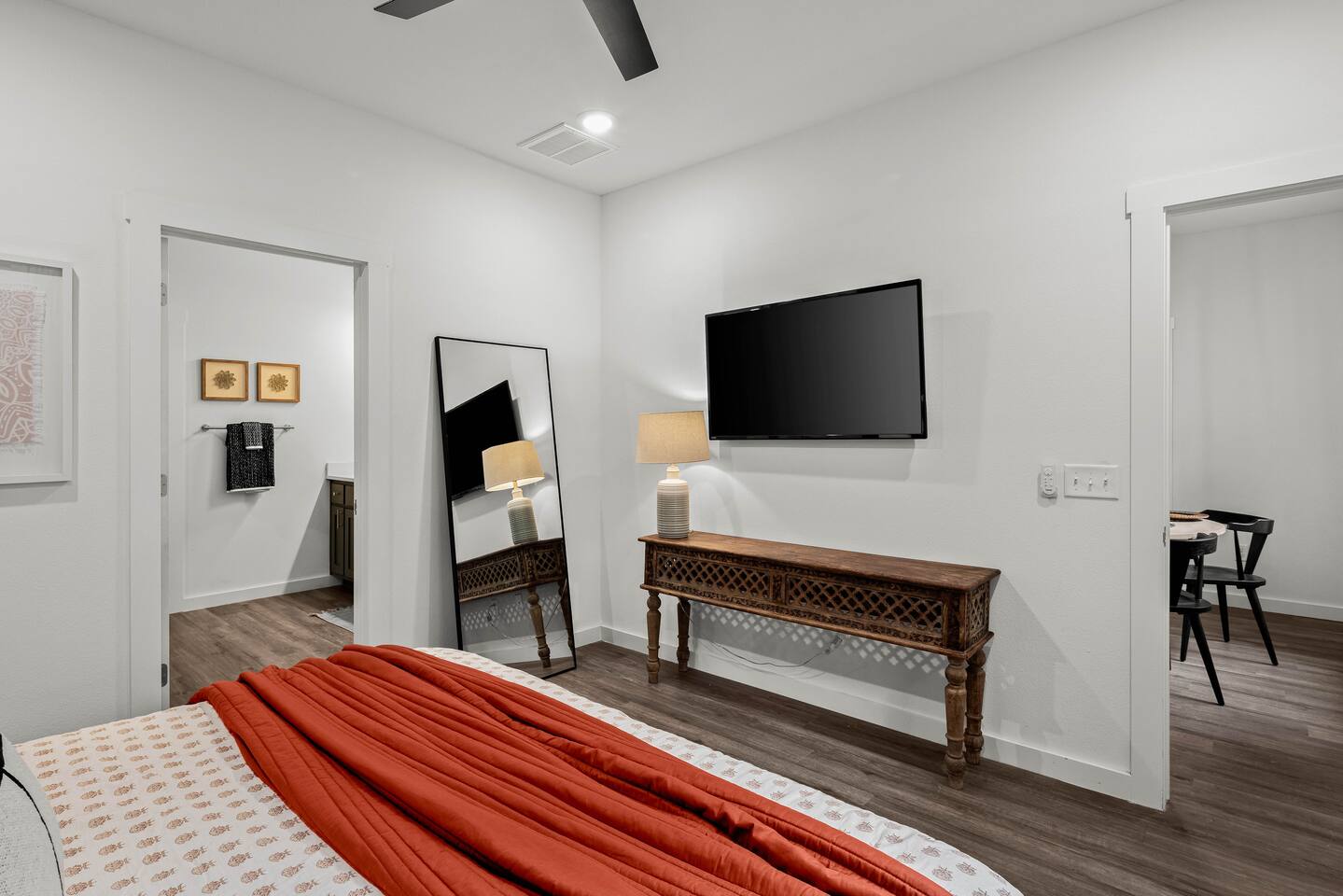 Step into comfort, style, and tranquility in this beautifully designed 3-bedroom, 2-bath retreat. The spacious master suite features a luxurious en-suite bathroom with a double vanity and walk-in closet—your private space to unwind. Whether you're working remotely or streaming your favorite shows, enjoy fast Wi-Fi, a dedicated office space, and smart TVs with YouTube TV in every room. For outdoor lovers, an on-site bike wash station makes it easy to clean up after a ride on the nearby Back 40 trails. In-unit laundry, a fully stocked kitchen, and serene outdoor seating round out the experience—perfect for couples, families, and extended stays. Key Amenities - King suite with en-suite bath & walk-in closet - Dedicated home office for remote work - Smart TVs in all bedrooms + living room - High-speed Wi-Fi + YouTube TV - On-site bike wash station - Washer & dryer included Explore the Best of Bella Vista & NWA Just minutes away, you'll find top outdoor destinations like the Back 40, Blowing Springs, and Little Sugar Trail Systems—perfect for mountain biking, hiking, or trail running. For a relaxing walk, visit the peaceful Tanyard Creek Nature Trail, or take in the architectural beauty of the Mildred B. Cooper Memorial Chapel, nestled by Lake Norwood. Enjoy access to seven scenic lakes, ideal for kayaking, paddleboarding, and fishing. Golfers can tee off at one of Bella Vista’s seven picturesque golf courses, set in the rolling Ozark hills. Looking to explore beyond Bella Vista? Take a short drive to world-class attractions like the Crystal Bridges Museum of American Art, The Momentary, and the lively town squares of Bentonville, Rogers, and Eureka Springs—home to dining, shops, art, and seasonal events.
