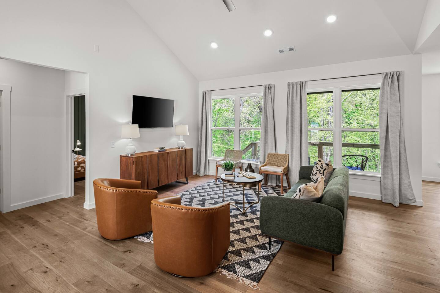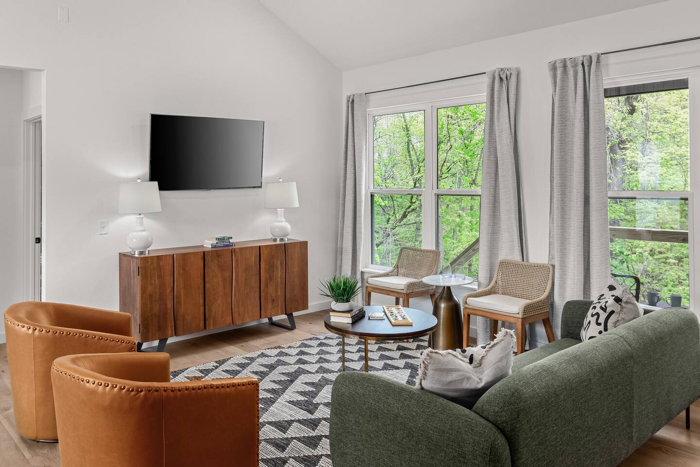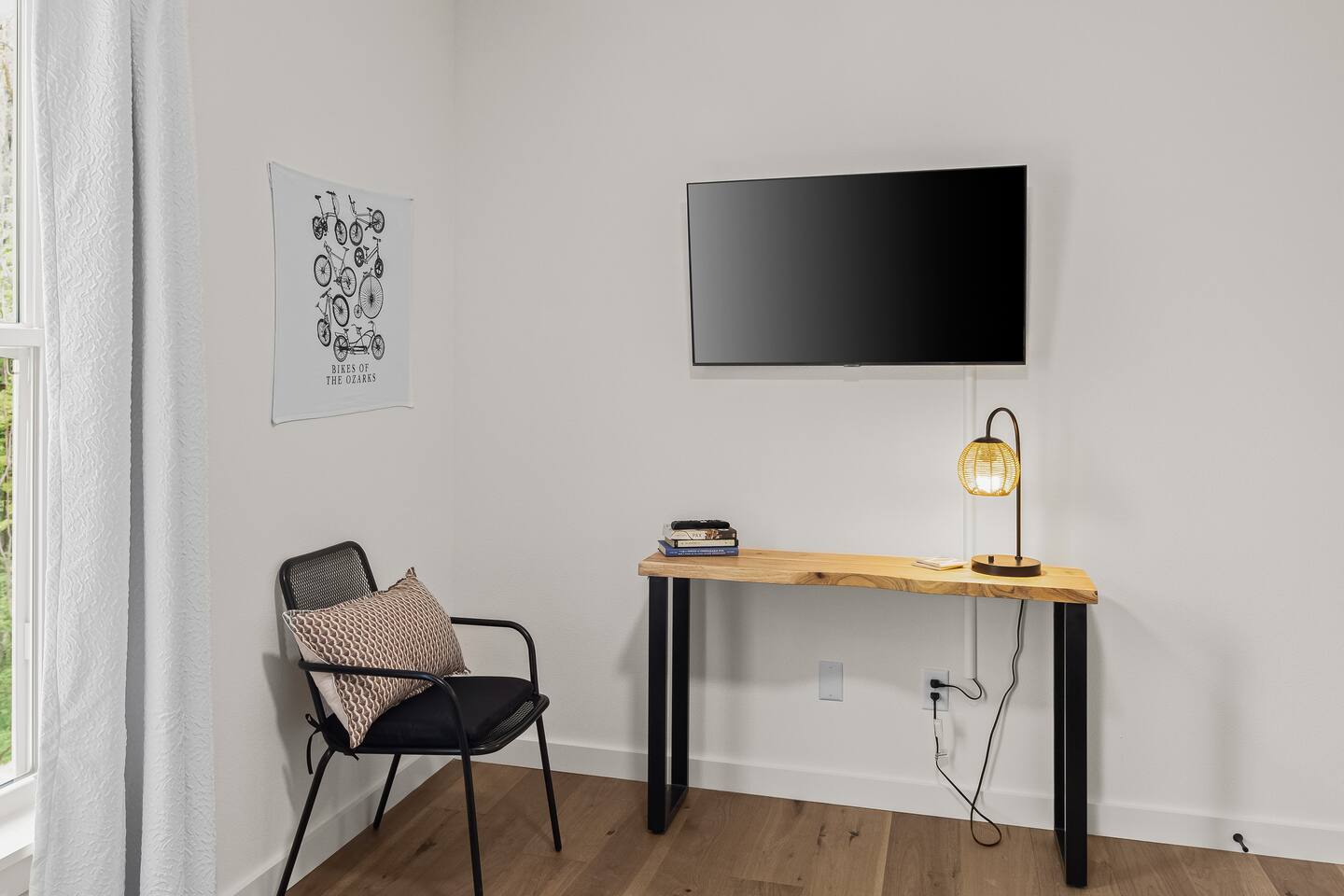 Inside, you’ll find a spacious master suite with an en-suite bathroom, double vanity, and walk-in closet. A dedicated office offers remote workers a quiet, functional space, while each bedroom (and the living room) features its own smart TV with YouTube TV access for entertainment anytime. Stay connected with high-speed internet, enjoy the convenience of in-unit laundry and drying machines, and take advantage of the on-site bike wash station—perfect for mountain bikers coming off the nearby Back 40 trails. - Master suite w/ double sink & walk-in closet - Dedicated office workspace - TVs in all bedrooms + living room - High-speed internet & YouTube TV - On-site bike wash station - Washer + dryer included Whether you're here to explore the outdoors, work remotely, or simply unwind, this home offers the luxury, convenience, and charm to make your Bella Vista stay unforgettable. Explore the Best of Bella Vista & NWA Just minutes away, you'll find top outdoor destinations like the Back 40, Blowing Springs, and Little Sugar Trail Systems—ideal for hiking, trail running, or mountain biking. For a peaceful walk, head to Tanyard Creek Nature Trail, or visit the stunning Mildred B. Cooper Memorial Chapel nestled by Lake Norwood. Bella Vista also offers access to seven scenic lakes for kayaking, paddleboarding, and fishing, and seven golf courses set in the rolling Ozarks. You’re a short drive to world-class art and culture at Crystal Bridges Museum and The Momentary, plus amazing restaurants, local markets, and charming towns like Bentonville, Rogers, and Eureka Springs.